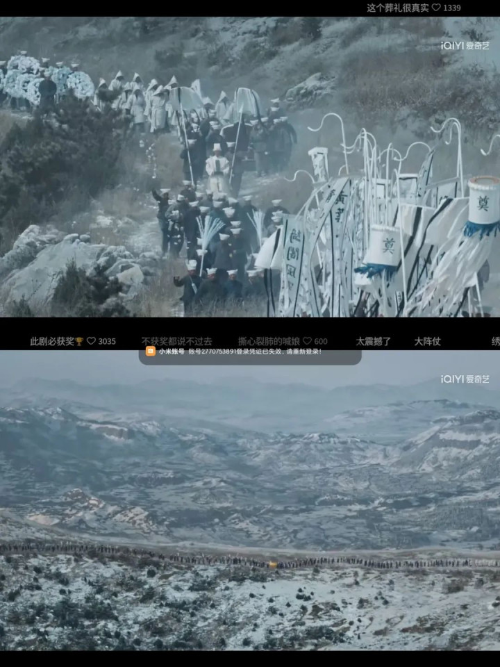 第一场戏是绣绣娘出殡,送葬的队伍绵延几里,在冬日荒凉贫瘠的土地上蜿蜒伸展,场面震撼。